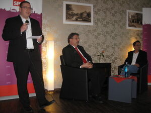Eröffnet von Vorstandsmitglied Oliver Will führte der Abteilungsvorsitzende der SPD Französisch Buchholz Claus Foerster durch den Abend. Dabei ging es darum, unseren Gast Ralf Wieland persönlich und politisch näher kennenzulernen. So war u.a. zu erfahren, dass er ursprünglich nicht aus Berlin-Wedding stammt, sondern in Wilhelmshaven geboren ist und bereits mit 16 Jahren in Rheinland-Pfalz in die SPD eintrat. In der anschließenden Fragerunde gab Ralf Wieland den Gästen engagiert Auskunft.
